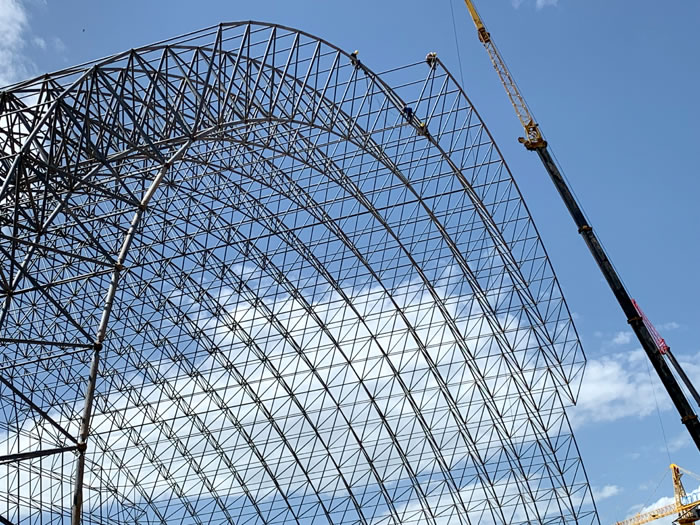 (2)网架加工前应对现场尺寸进行复测,确认无误后方可进行加工、安装;网架制作、运输、安装应遵守《空间网格结构技术规程》JGJ7-2010、《钢网架冷水江螺栓球节点》JG/T 10-2009、《钢网架冷水江螺栓球节点用高强度螺栓》 GB/T 16939-2016、《冷水江钢结构冷水江工程冷水江施工规范》 GB50755-2012、《冷水江钢结构冷水江工程冷水江施工质量验收标准》 GB50205-2020。